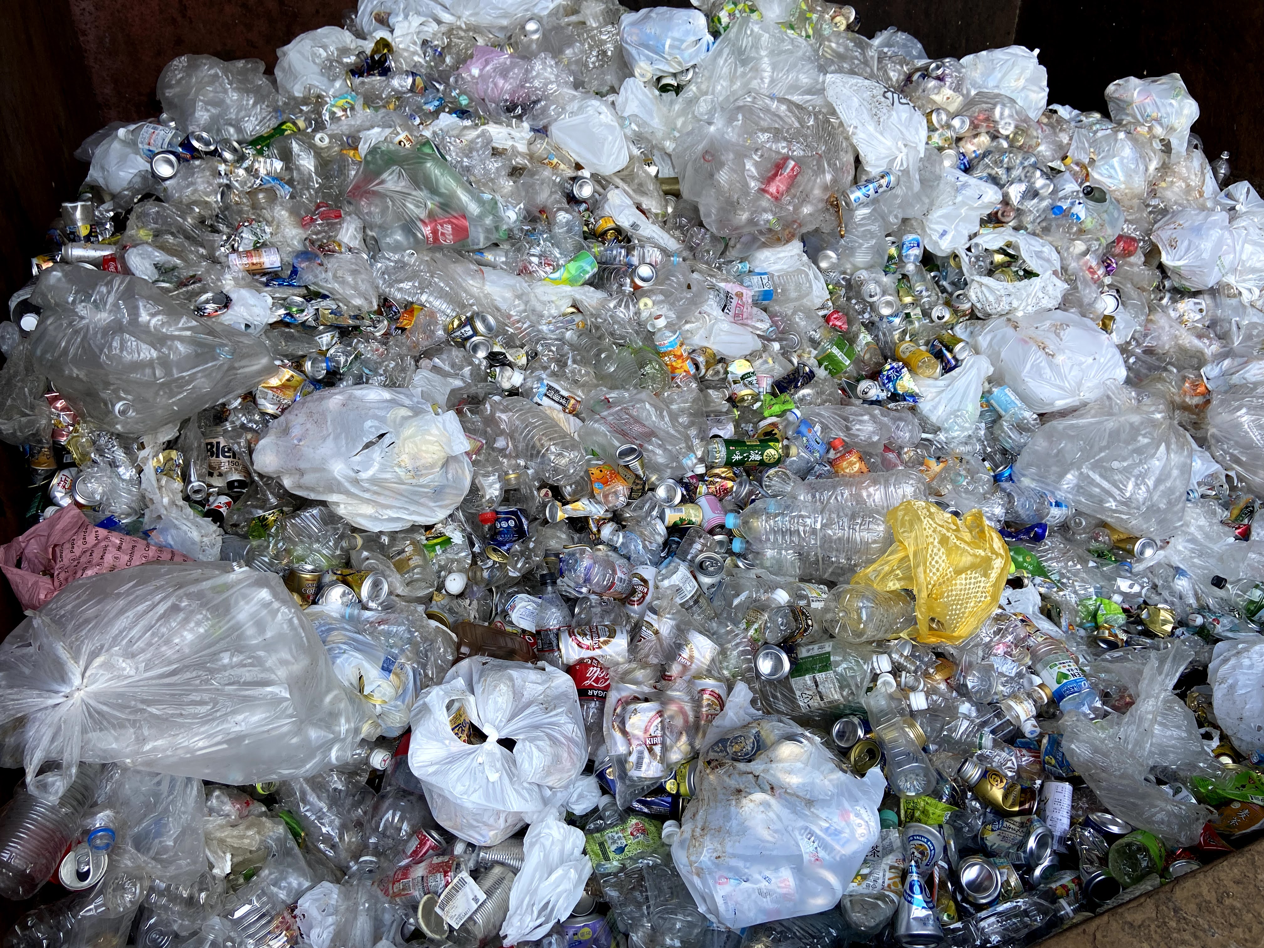 年末年始はおうち時間が増える方も多いかと思います。ペットボトルのキャップとラベルを取って、軽く洗って、つぶして出してください!特に写真のようにキャップが付いたままだと、最後までつぶれることなく選別センターに運ばれていき、ヤードひっ迫の原因になりますので、ペットボトルの正しい出し方にご協力ください!